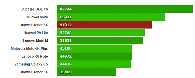 Come potete vedere, se comparato agli altri modelli di fascia media, Honor 6X si comporta molto bene.